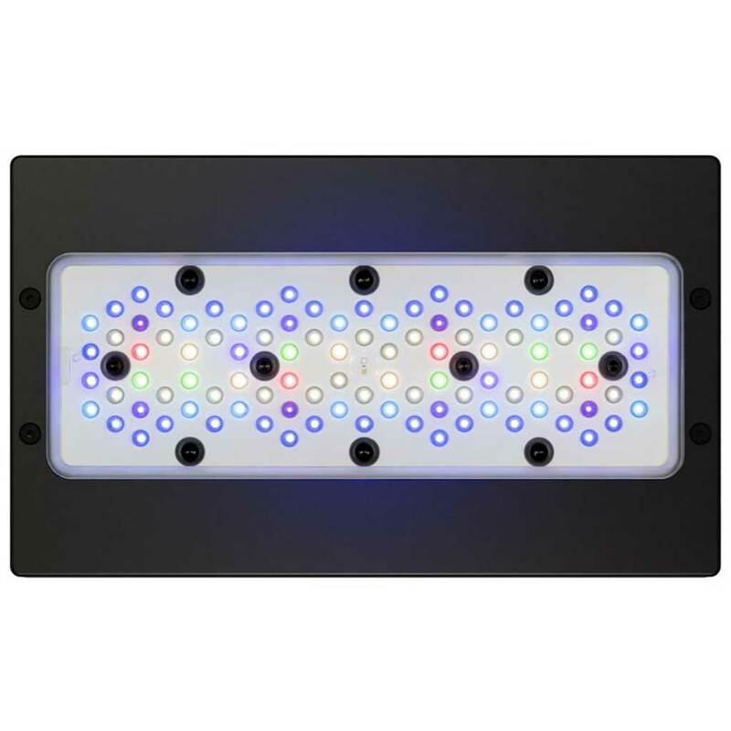 Radion G6 increases output from an impressive 110.5 degrees in the G5 to a staggering 126.3 degrees. This improvement was achievable through a change to the primary optic on the LEDs which then integrates with the geometry in the existing HEI (Hemispherically Edge Illuminating) secondary optic (lens). Radion is a winner in the cost vs. output equation. Wide even spread requires less fixtures to cover more tank. The result, incredibly even PAR over almost 4ft of coverage area, making it the highest average output Radion and perhaps the most efficient aquarium light ever made. An added benefit of super wide spread is that the aquarium assists the optics. The output angle of the G6 results in the interior glass of the aquarium reflecting light back into the tank. This reduces shadowing and provides light to the undersides of coral.